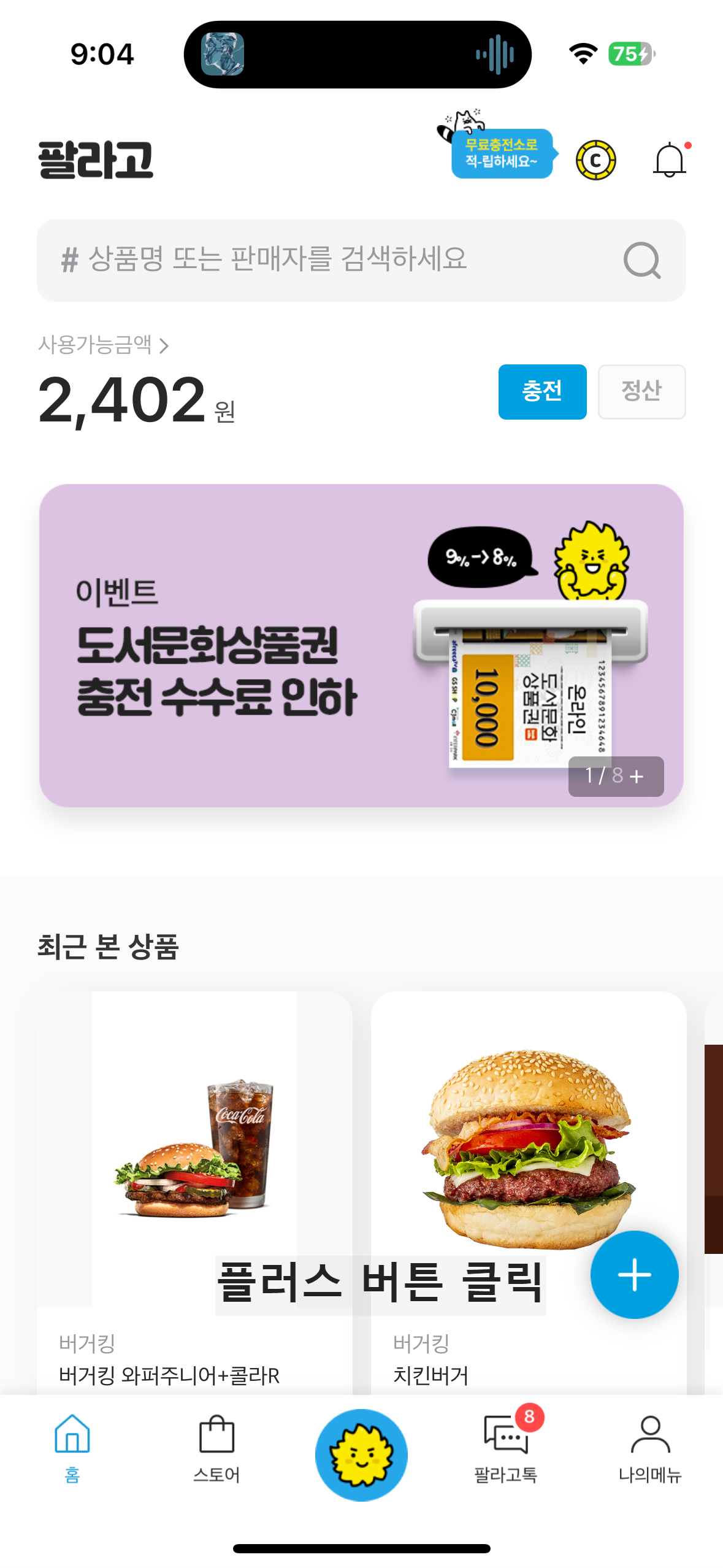 그러고 팔라고 메인화면에서 위에 보이시는 플러스 버튼을 눌러 줍니다.