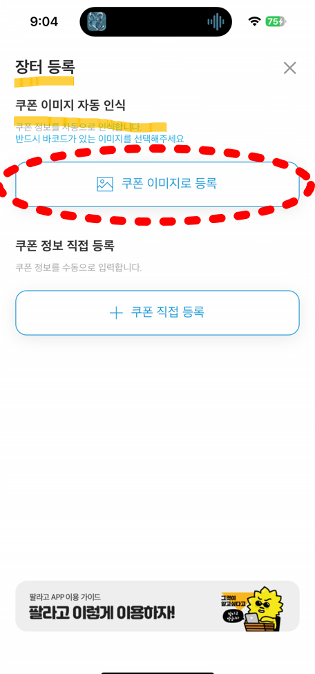 그럼 가지고 있는 기프티콘을 등록하는 화면이 나옵니다.